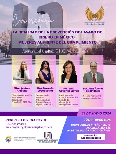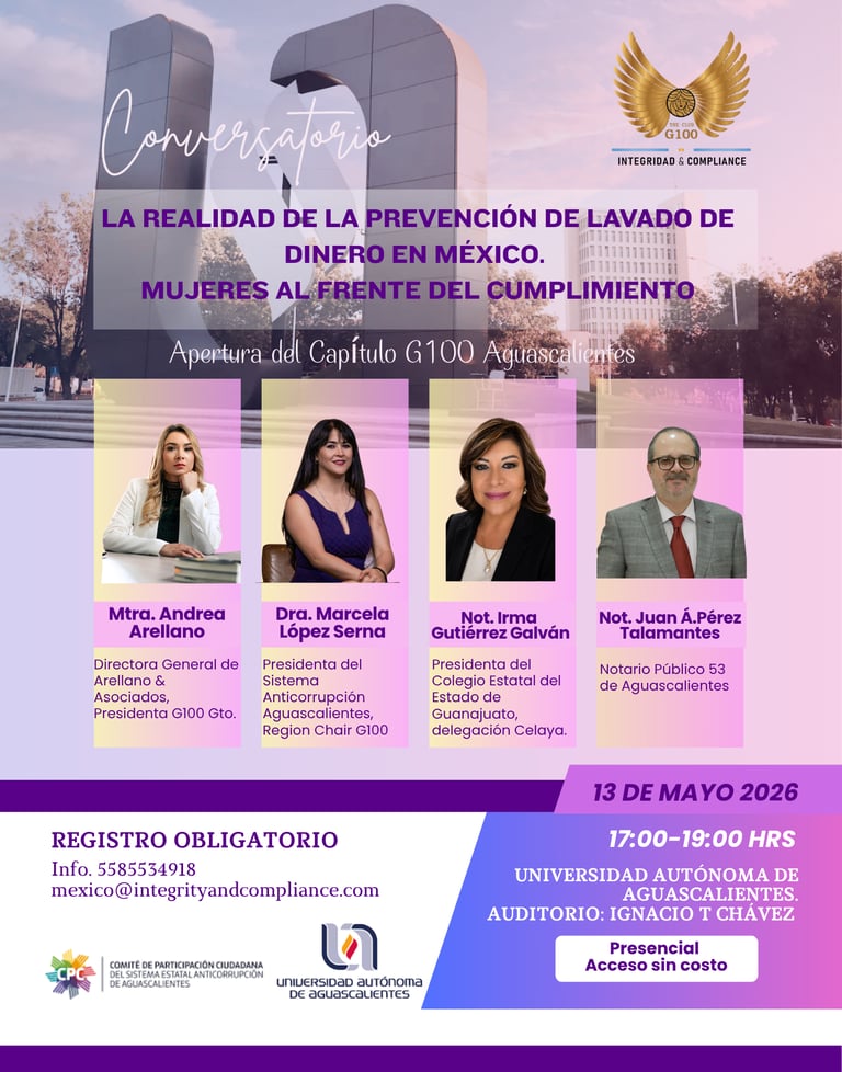 El capítulo G100 Aguascalientes abre con mujeres líderes en cumplimiento financiero.
